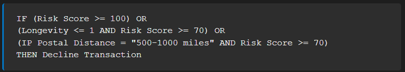 One of the ways we can implement scores is conditions within behavioral fraud rules. I gave such an example in the past: