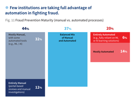 And their budgets? 72% of automated institutions expect to increase fraud spending by 6% or more, versus only 45% of manual ones.