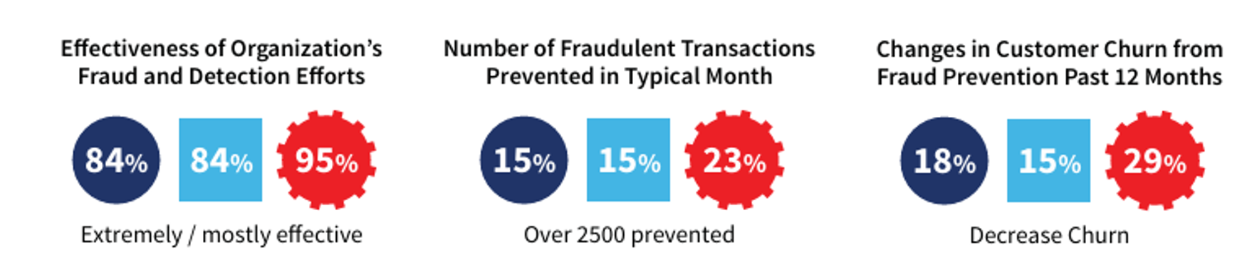 They're also stopping more fraud. 23% prevent over 2,500 fraudulent transactions monthly, compared to just 15% of manual organizations.