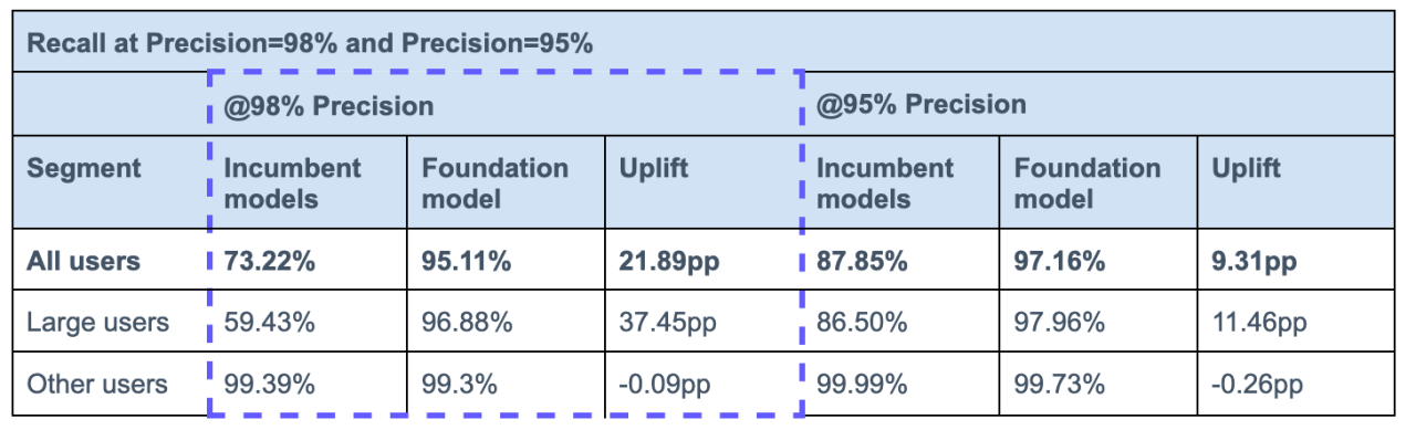 They described how it outperformed their “traditional” ML model and provided the table below as reference: